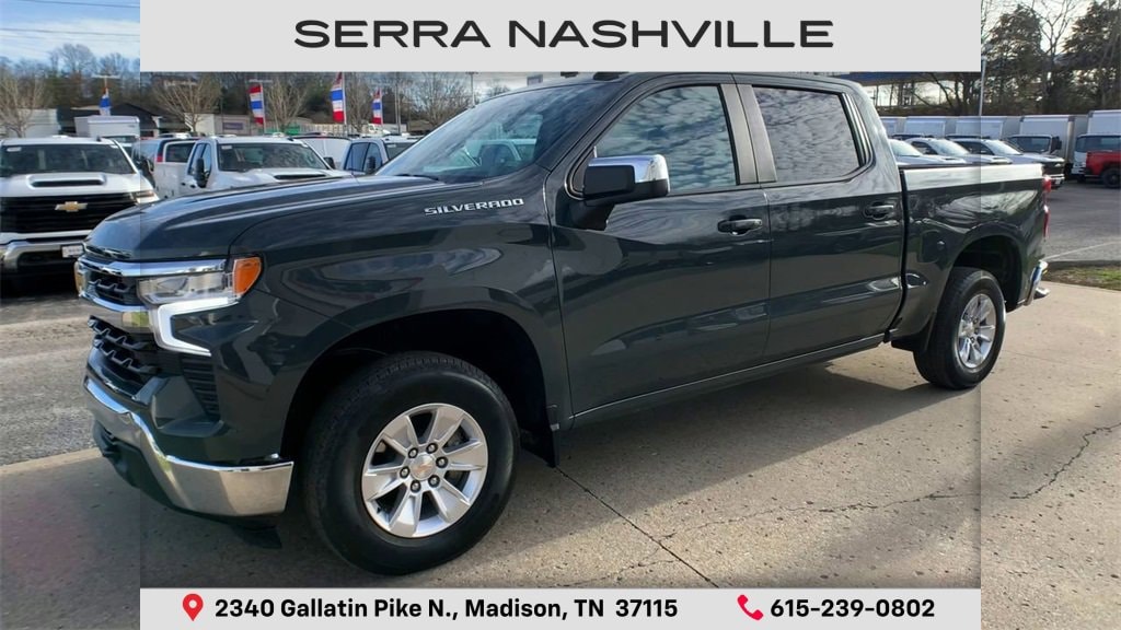 Recent Arrival! 10-Speed Automatic, 4WD, Jet Black Cloth. Clean CARFAX.Cypress Gray 2025 Chevrolet Silverado 1500 LT 4D Crew Cab 4WD EcoTec3 5.3L V8 10-Speed AutomaticVisit the #1 Volume GM dealer in Tennessee - 2340 Gallatin Pike North.Serving the greater Nashville Area. Now serving Antioch, TN - Clarksville, TN - Murfreesboro, TN - Springfield, TN.