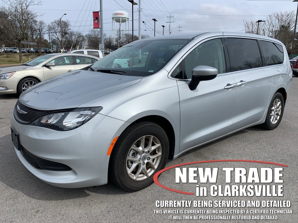 The Pre-Owned 2023 Chrysler Voyager LX with 3.6L V6 24V VVT at Serra Clarksville. Well equipped: Quick Order Package 27E, 17 x 7 Aluminum Wheels, 3.25 Axle Ratio, 3rd row seats: split-bench, 4-Wheel Disc Brakes, 6 Speakers, ABS brakes, Air Conditioning, Alloy wheels, AM/FM radio: SiriusXM, Apple CarPlay, Apple CarPlay/Android Auto, Automatic temperature control, Black Seats, Brake assist, Bumpers: body-color, Cloth Bucket Seats, Compass, Delay-off headlights, Driver door bin, Driver vanity mirror, Driver's Seat Mounted Armrest, Dual front impact airbags, Dual front side impact airbags, Electronic Stability Control, Exterior Mirrors w/Heating Element, Four wheel independent suspension, Front anti-roll bar, Front Bucket Seats, Front dual zone A/C, Front reading lights, Fully automatic headlights, Google Android Auto, GPS Antenna Input, Heated door mirrors, Heated front seats, Heated steering wheel, Illuminated entry, Knee airbag, Low tire pressure warning, Occupant sensing airbag, Outside temperature display, Overhead airbag, Overhead console, Panic alarm, ParkView Rear Back-Up Camera, Passenger door bin, Passenger seat mounted armrest, Passenger vanity mirror, Power door mirrors, Power driver seat, Power Liftgate, Power steering, Power windows, Radio data system, Radio: Uconnect 5 w/7 Display, Rear air conditioning, Rear window defroster, Rear window wiper, Reclining 3rd row seat, Remote keyless entry, Security system, Speed control, Split folding rear seat, Spoiler, Steering wheel mounted audio controls, Tachometer, Telescoping steering wheel, Tilt steering wheel, Touring Suspension, Traction control, Trip computer, USB Host Flip, Variably intermittent wipers, and Voltmeter.