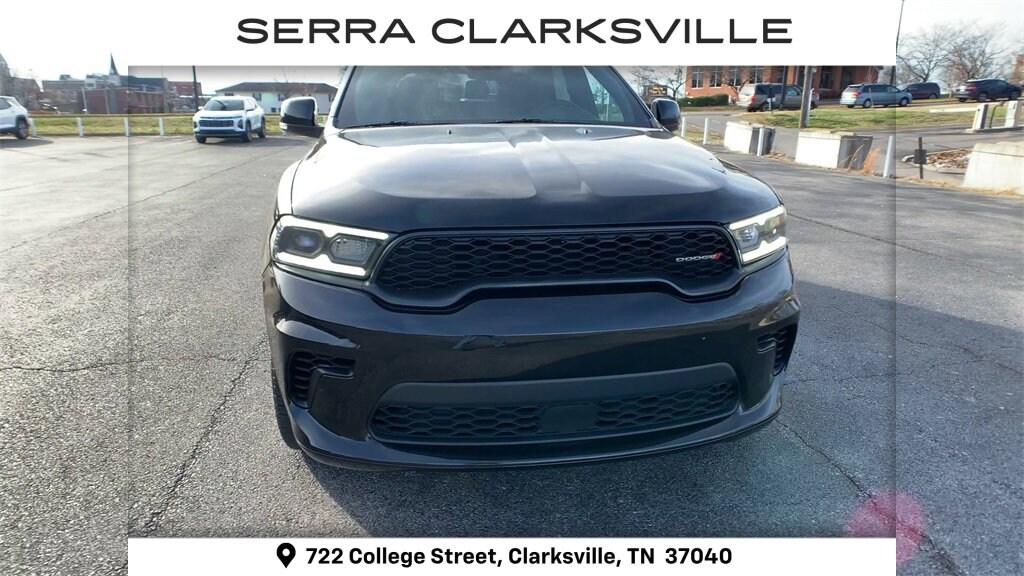 Clean CARFAX. DB Black Crystal Clearcoat 2024 Dodge Durango GT PlusThe Pre-Owned 2024 Dodge Durango GT Plus with 3.6L V6 24V VVT at Serra Clarksville. Well equipped: Quick Order Package 2BG GT Plus (1-Year Trial (Registration Required), 10.1 Touchscreen Display, 115V Auxiliary Power Outlet, 180 Amp Alternator, 4G LTE Wi-Fi Hot Spot, 7 & 4 Pin Wiring Harness, Adaptive Cruise Control w/Stop, Apple CarPlay, Auto-Dimming Exterior Driver Mirror, Black Roof Rails, Blind Spot w/Trailer Detection, Class IV Receiver Hitch, Connected Travel & Traffic Services, Disassociated Touchscreen Display, Dual Remote USB Port - Charge Only, Exterior Mirrors w/Heating Element, Exterior Mirrors w/Memory, Exterior Mirrors w/Supplemental Signals, Floor Console w/Leather Armrest, For Details Visit DriveUconnect.com, Full Speed Forward Collision Warning Plus, Global Telematics Box Module (TBM), Gloss Black Exterior Mirrors, Google Android Auto, GPS Antenna Input, GPS Navigation, HD Radio, Heated Second Row Seats, Heavy-Duty Engine Cooling, Integrated Center Stack Radio, Integrated Roof Rail Crossbars, Integrated Voice Command w/Bluetooth, Leather Trimmed Bucket Seats, Leather Wrapped Door Panels, LED Auxiliary Low Beam & Turn Signal, Power 6x9 Multi-Function Foldaway Mirrors, Power 8-Way Driver Memory 8-Way Passenger Seats, Power Driver/Passenger 4-Way Lumbar Adjust, Power Sunroof, Power Tilt & Telescopic Steering Column, Radio: Uconnect 5 Nav w/10.1 Display, Radio/Driver Seat/Mirrors Memory, Rear Load Leveling Suspension, Red Accent Stitching, SiriusXM Guardian - Included Trial (B), SiriusXM w/360L, Trailer Brake Control, USB Host Flip, and Ventilated Front Seats), AWD, 3.45 Rear Axle Ratio, 3rd row seats: split-bench, 4-Wheel Disc Brakes, 6 Speakers, ABS brakes, Air Conditioning, Alloy wheels, AM/FM radio: SiriusXM, Apple CarPlay/Android Auto, Auto-dimming Rear-View mirror, Automatic temperature control, Brake assist, Bumpers: body-color, Cloth Bucket Seats w/Shift Insert, Compass, Delay-off headlights, Driver door bin, Driver vanity mirror, Dual front impact airbags, Dual front side impact airbags, Electronic Stability Control, Four wheel independent suspension, Front anti-roll bar, Front Bucket Seats, Front Center Armrest w/Storage, Front dual zone A/C, Front License Plate Bracket, Front reading lights, Fully automatic headlights, Garage door transmitter, Heated door mirrors, Heated front seats, Heated steering wheel, Illuminated entry, Knee airbag, Leather steering wheel, Low tire pressure warning, Occupant sensing airbag, Outside temperature display, Overhead airbag, Overhead console, Panic alarm, ParkView Rear Back-Up Camera, Passenger door bin, Passenger vanity mirror, Power door mirrors, Power driver seat, Power Liftgate, Power steering, Power windows, Radio data system, Radio: Uconnect 4 w/8.4 Display, Rear air conditioning, Rear anti-roll bar, Rear reading lights, Rear seat center armrest, Rear window defroster, Rear window wiper, Remote keyless entry, Speed control, Speed-sensing steering, Speed-Sensitive Wipers, Split folding rear seat, Spoiler, Sport steering wheel, Steering wheel mounted audio controls, Tachometer, Telescoping steering wheel, Tilt steering wheel, Traction control, Trip computer, Variably intermittent wipers, Voltmeter, and Wheels: 20 x 8.0 Fine SilveR.AWD 3.6L V6 24V VVT 8-Speed AutomaticOdometer is 6854 miles below market average!