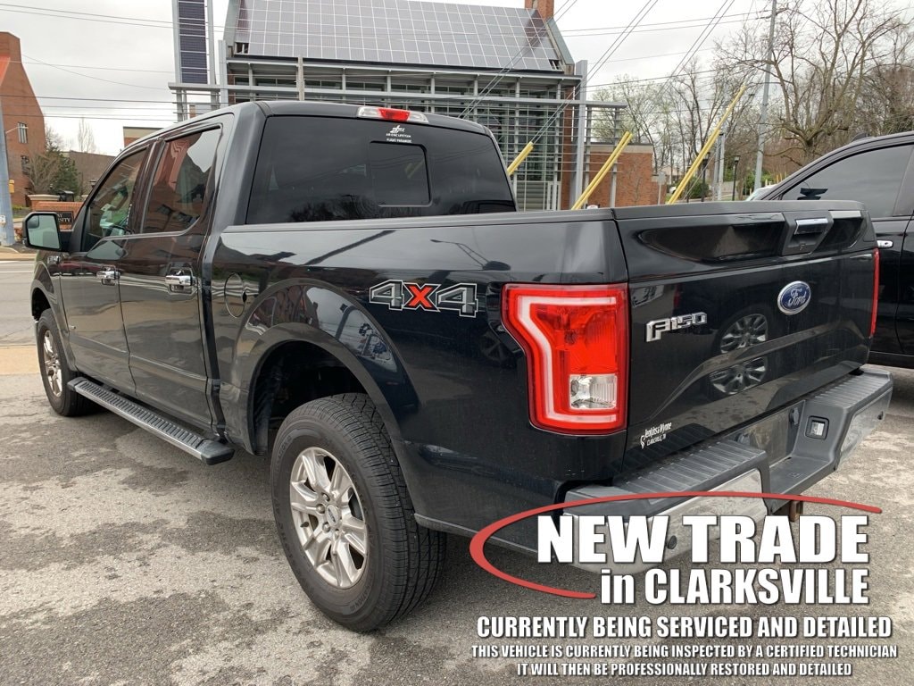 The Pre-Owned 2017 Ford F-150 XLT with 3.5L V6 at Serra Clarksville. Well equipped: Equipment Group 302A Luxury (110V/400W Outlet, 4.2 Productivity Screen in Instrument Cluster, Auto-Dimming Rear-View Mirror, BoxLink, Class IV Trailer Hitch Receiver, Cloth 40/20/40 Front Seat, Heated Front Seats, Leather-Wrapped Steering Wheel, LED Box Lighting, Power Glass Heated Sideview Mirrors, Power-Adjustable Pedals, Power-Sliding Rear Window, Radio: Single-CD w/SiriusXM Satellite, Rear Under-Seat Storage, Rear View Camera w/Dynamic Hitch Assist, Rear Window Defroster, Remote Start System, Reverse Sensing System, SYNC, and SYNC 3), Max Trailer Tow Package (Auxiliary Transmission Oil Cooler, Engine Oil Cooler, Extended Range 36 Gallon Fuel Tank, Integrated Trailer Brake Controller, Pro Trailer Backup Assist, and Upgraded Front Stabilizer Bar), XLT Chrome Appearance Package (Chrome Billet Style Grille w/Chrome Surround, Chrome Door & Tailgate Handles w/Body-Color Bezel, Chrome Step Bars, Single-Tip Chrome Exhaust, and Wheels: 18 Chrome-Like PVD), 4WD, 4-Wheel Disc Brakes, 6 Speakers, 8-Way Power Driver's Seat, ABS brakes, Air Conditioning, Alloy wheels, AM/FM radio, Brake assist, Bumpers: chrome, CD player, Compass, Delay-off headlights, Driver door bin, Driver vanity mirror, Dual front impact airbags, Dual front side impact airbags, Electronic Stability Control, Front anti-roll bar, Front Center Armrest w/Storage, Front fog lights, Front reading lights, Front wheel independent suspension, Fully automatic headlights, Illuminated entry, Low tire pressure warning, Occupant sensing airbag, Outside temperature display, Overhead airbag, Panic alarm, Passenger door bin, Passenger vanity mirror, Power door mirrors, Power steering, Power windows, Radio data system, Radio: AM/FM Stereo/Single-CD Player, Rear reading lights, Rear step bumper, Remote keyless entry, Security system, Speed control, Speed-sensing steering, Split folding rear seat, Steering wheel mounted audio controls, Tachometer, Telescoping steering wheel, Tilt steering wheel, Traction control, Variably intermittent wipers, Voltmeter, and Wheels: 17 Silver Painted Aluminum.