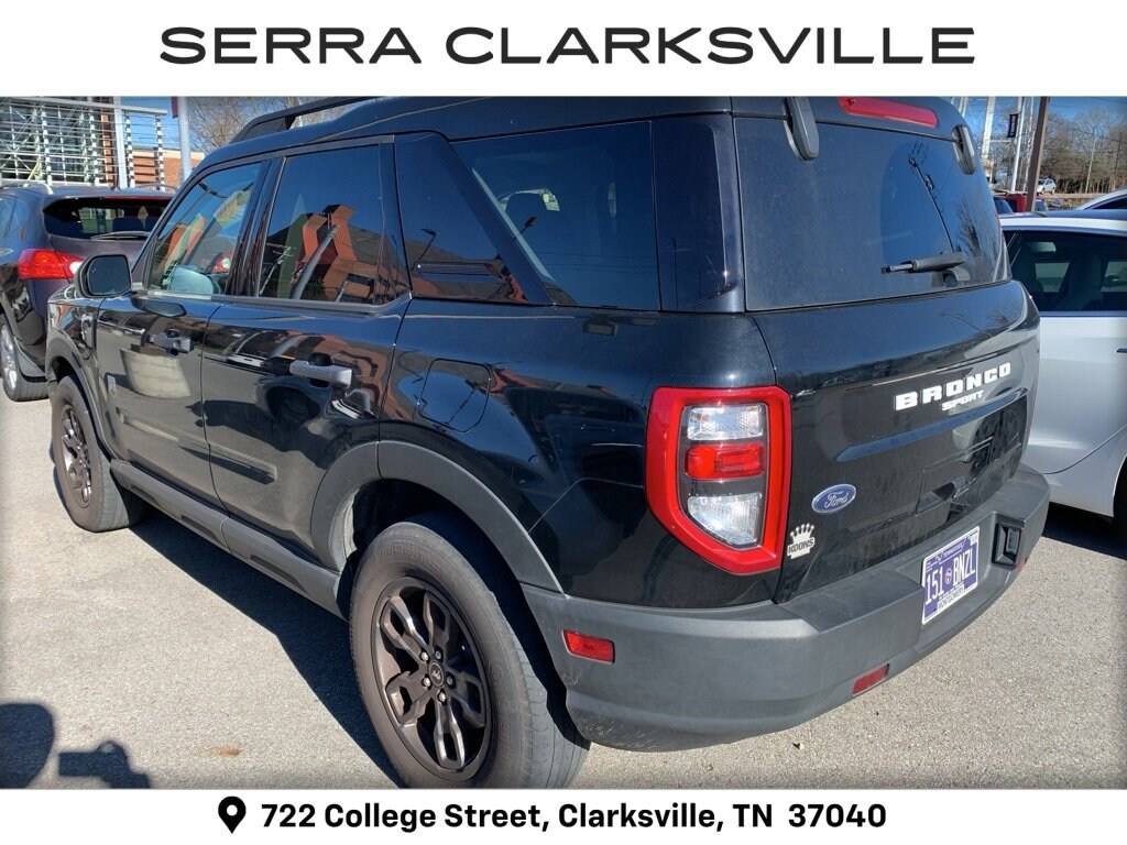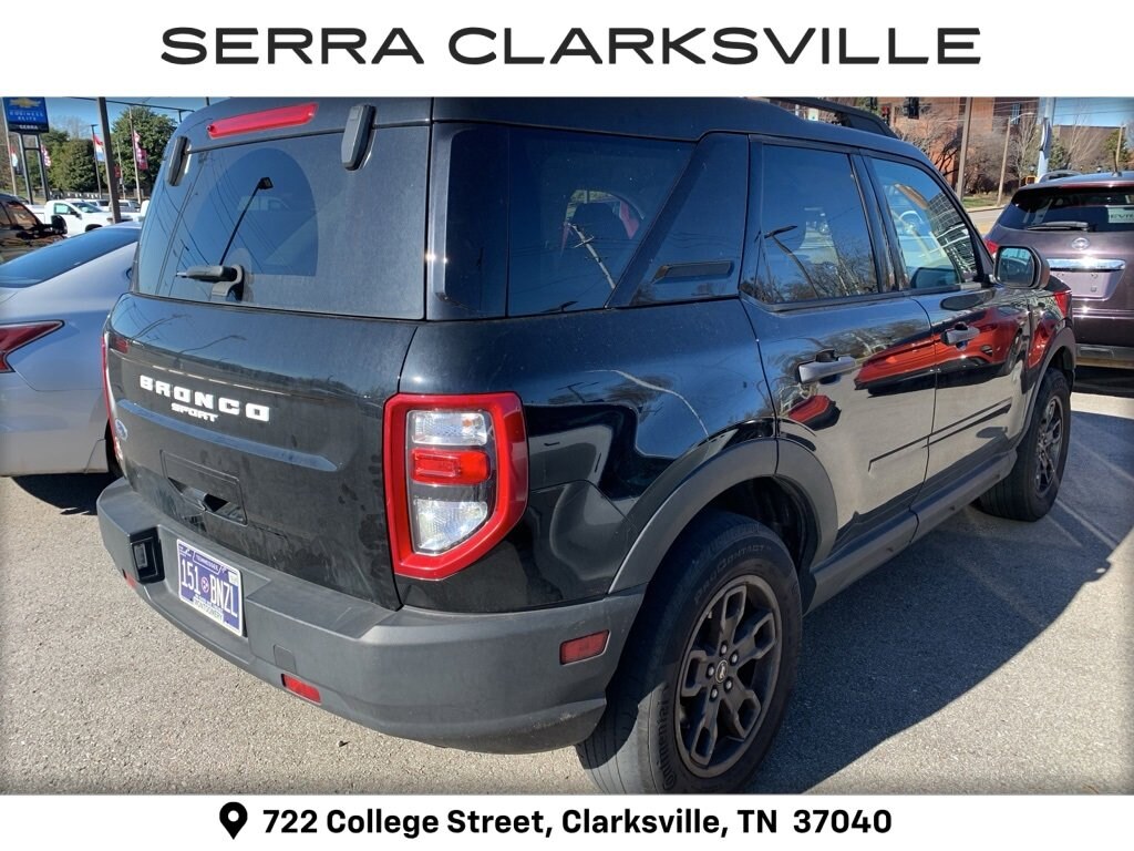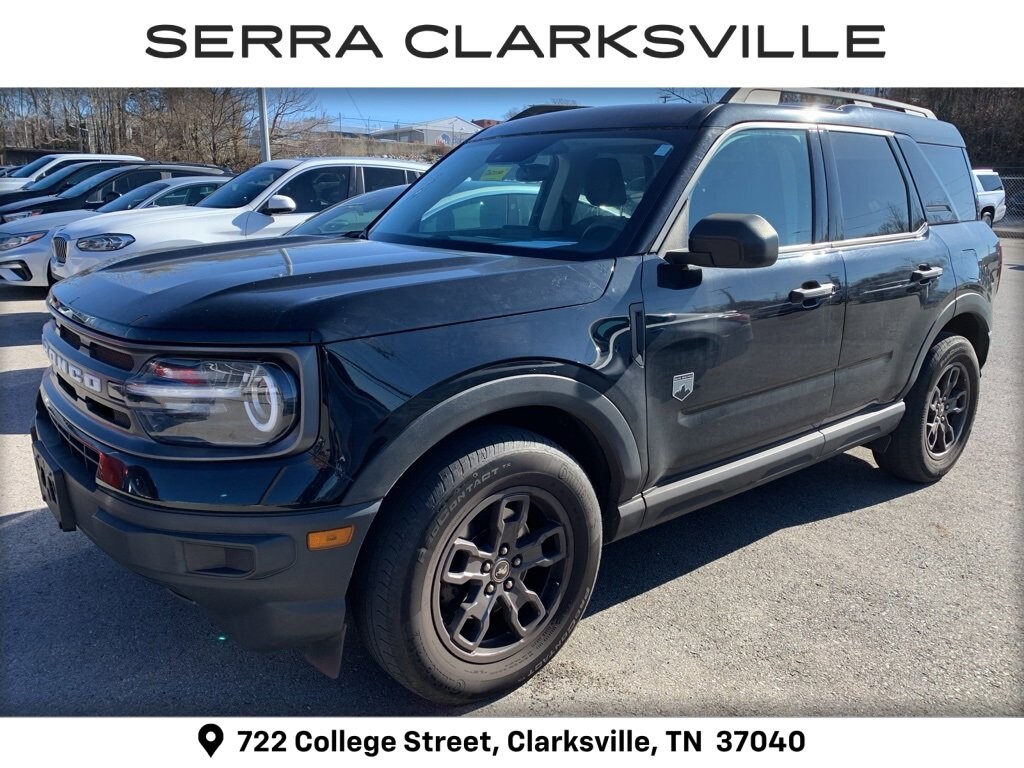 Shadow Black 2022 Ford Bronco Sport Big BendThe Pre-Owned 2022 Ford Bronco Sport Big Bend with 1.5L EcoBoost at Serra Clarksville. Well equipped: Equipment Group 200A, 3.80 Axle Ratio, 4-Wheel Disc Brakes, 6 Speakers, ABS brakes, Air Conditioning, Alloy wheels, AM/FM radio: SiriusXM, AM/FM Stereo, Auto High-beam Headlights, Automatic temperature control, Brake assist, Compass, Delay-off headlights, Driver door bin, Driver vanity mirror, Dual front impact airbags, Dual front side impact airbags, Electronic Stability Control, Emergency communication system: SYNC 3 911 Assist, Four wheel independent suspension, Front anti-roll bar, Front Bucket Seats, Front Center Armrest, Front reading lights, Fully automatic headlights, Heated door mirrors, Illuminated entry, Knee airbag, Low tire pressure warning, Occupant sensing airbag, Outside temperature display, Overhead airbag, Overhead console, Panic alarm, Passenger door bin, Passenger vanity mirror, Power door mirrors, Power steering, Power windows, Radio data system, Rear anti-roll bar, Rear reading lights, Rear seat center armrest, Rear window defroster, Rear window wiper, Remote keyless entry, Roof rack: rails only, Security system, SiriusXM Radio, Speed control, Speed-sensing steering, Speed-Sensitive Wipers, Split folding rear seat, Steering wheel mounted audio controls, SYNC 3 Communications & Entertainment System, SYNC 3/Apple CarPlay/Android Auto, Tachometer, Telescoping steering wheel, Tilt steering wheel, Traction control, Trip computer, Unique Cloth Front Bucket Seats, Variably intermittent wipers, and Wheels: 17 Carbonized Gray-Painted Aluminum.4WD 1.5L EcoBoost 8-Speed AutomaticRecent Arrival! 25/28 City/Highway MPG