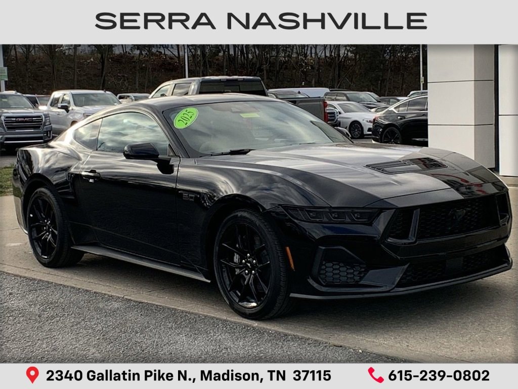 Recent Arrival!Shadow Black 2025 Ford Mustang GT 2D Coupe RWD 5.0L V8 Ti-VCT 6-Speed ManualVisit the #1 Volume GM dealer in Tennessee - 2340 Gallatin Pike North.Serving the greater Nashville Area. Now serving Antioch, TN - Clarksville, TN - Murfreesboro, TN - Springfield, TN.