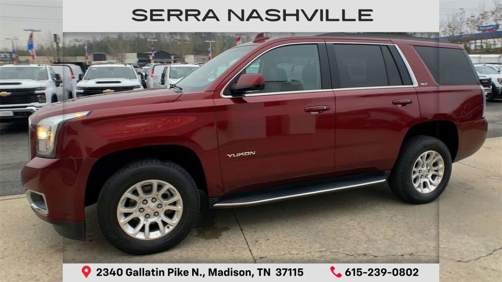 Recent Arrival!Crimson Red Tintcoat 2018 GMC Yukon SLT 4D Sport Utility RWD EcoTec3 5.3L V8 6-Speed Automatic Electronic with OverdriveVisit the #1 Volume GM dealer in Tennessee - 2340 Gallatin Pike North.Serving the greater Nashville Area. Now serving Antioch, TN - Clarksville, TN - Murfreesboro, TN - Springfield, TN.