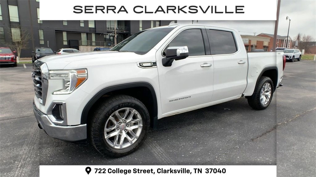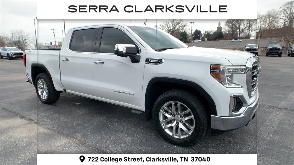 Clean CARFAX. Summit White 2021 GMC Sierra 1500 SLTThe Pre-Owned 2021 GMC Sierra 1500 SLT with 3.0L I6 at Serra Clarksville. Well equipped: Preferred Equipment Group 4SA (12-Volt Rear Auxiliary Power Outlet, 120-Volt Bed Mounted Power Outlet, 120-Volt Instrument Panel Power Outlet, 170 Amp Alternator, 4G LTE Wi-Fi Hotspot Capable, Auto-Locking Rear Differential, Auxiliary External Transmission Oil Cooler, Chrome Grille, Color-Keyed Carpeting Floor Covering, Compass, Deep-Tinted Glass, Electric Rear-Window Defogger, Electrical Lock Control Steering Column, Front Frame-Mounted Black Recovery Hooks, GMC Connected Access Capable, Heated Driver & Front Outboard Passenger Seating, Hitch Guidance w/Hitch View, In-Vehicle Trailering App, Integrated Trailer Brake Controller, Keyless Open & Start, LED Cargo Area Lighting, Manual Tilt-Wheel & Telescoping Steering Column, OnStar & GMC Connected Services Capable, Power Door Locks, Power Front Passenger Windows w/Express Up/Down, Power Front Windows w/Driver Express Up/Down, Power Rear Windows w/Express Down, ProGrade Trailering System, Rear Dual USB Charging-Only Ports, Rear Wheelhouse Liners, Remote Vehicle Starter System, Steering Wheel Audio Controls, and Theft Deterrent System (Unauthorized Entry)), SLT Convenience Package (2 USB Ports, 2 USB Ports (1st Row), Floor-Mounted Center Console, Front Bucket Seats, Heated 2nd Row Outboard Seats, Power Sliding Rear Window w/Rear Defogger, Universal Home Remote, and Ventilated Driver & Front Passenger Seats), Trailering Package (Hitch Guidance), X31 Off-Road & Protection Package (20 x 9 Polished Aluminum Wheels, All-Weather Floor Liner (LPO), and Spray-On Pickup Bed Liner w/GMC Logo), X31 Off-Road Package (Dual Exhaust w/Premium Tips, Heavy-Duty Air Filter, Hill Descent Control, Off-Road Suspension, and X31 Hard Badge), 10-Speed Automatic, 4WD, Dark Walnut/Slate Leather, 10-Way Power Driver Seat Adjuster w/Lumbar, 10-Way Power Passenger Seat Adjuster w/Lumbar, 220 Amp Alternator, 3.23 Rear Axle Ratio, 4-Wheel Disc Brakes, 6 Speakers, 6-Speaker Audio System Feature, ABS brakes, Air Conditioning, Alloy wheels, AM/FM radio: SiriusXM with 360L, Apple CarPlay/Android Auto, Auto-dimming door mirrors, Auto-dimming Rear-View mirror, Automatic temperature control, Brake assist, Bumpers: chrome, Delay-off headlights, Driver door bin, Driver Memory, Driver vanity mirror, Dual front impact airbags, Dual front side impact airbags, Electronic Stability Control, Engine Block Heater, Front 40/20/40 Split-Bench Seat, Front anti-roll bar, Front Center Armrest w/Storage, Front dual zone A/C, Front fog lights, Front License Plate Kit, Front reading lights, Front wheel independent suspension, Fully automatic headlights, Heated door mirrors, Heated front seats, Heated steering wheel, Heavy Duty Suspension, Illuminated entry, Low tire pressure warning, Memory seat, Not Equipped w/HD Radio, Not Equipped w/Heated 2nd Row Outboard Seats, Occupant sensing airbag, Outside temperature display, Overhead airbag, Overhead console, Panic alarm, Passenger door bin, Passenger vanity mirror, Perf Leather-Appointed Front Outboard Seat Trim, Power door mirrors, Power driver seat, Power passenger seat, Power steering, Power Sunroof, Power windows, Premium audio system: GMC Infotainment System, Radio data system, Radio: Premium GMC Infotainment Sys w/Multi-Touch, Rear reading lights, Rear seat center armrest, Rear step bumper, Rear window defroster, Remote keyless entry, Security system, SiriusXM w/360L, Speed control, Speed-sensing steering, Split folding rear seat, Steering wheel mounted audio controls, Tachometer, Telescoping steering wheel, Tilt steering wheel, Traction control, Trip computer, Variably intermittent wipers, Voltmeter, and Wheels: 18 x 8.5 6-Spoke Machined Aluminum.4WD 3.0L I6 10-Speed AutomaticOdometer is 1551 miles below market average! 22/26 City/Highway MPG