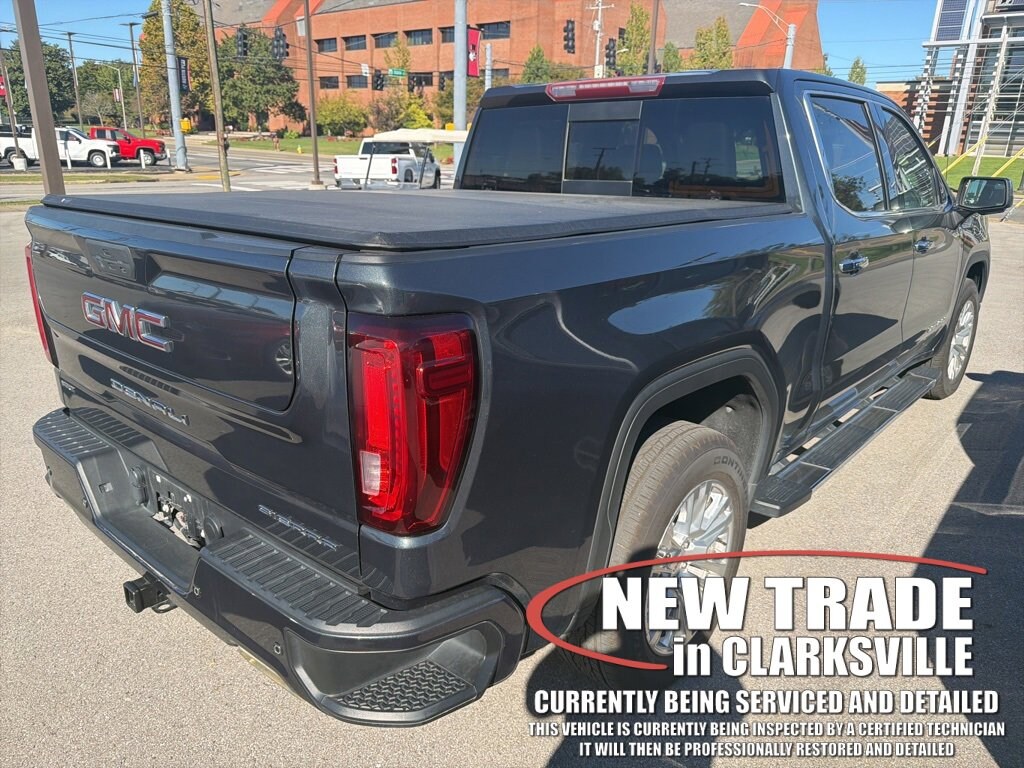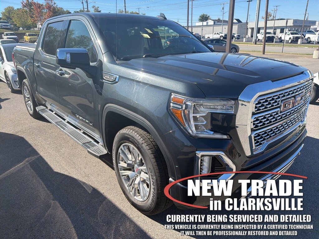 Local trade-in! Clean CARFAX. The Pre-Owned 2021 GMC Sierra 1500 Denali with EcoTec3 5.3L V8 at Serra Clarksville. Well equipped: Driver Alert Package I (Lane Change Alert w/Side Blind Zone Alert, Rear Cross Traffic Alert, and Ultrasonic Front & Rear Park Assist), Trailering Package (Hitch Guidance), 10-Speed Automatic, 4WD, Leather, 10-Way Power Driver Seat Adjuster w/Lumbar, 10-Way Power Passenger Seat Adjuster w/Lumbar, 12-Volt Rear Auxiliary Power Outlet, 120-Volt Bed Mounted Power Outlet, 120-Volt Instrument Panel Power Outlet, 170 Amp Alternator, 2 USB Ports, 2 USB Ports (1st Row), 3.23 Rear Axle Ratio, 4-Wheel Disc Brakes, 4G LTE Wi-Fi Hotspot Capable, 7 Speakers, ABS brakes, Adaptive Ride Control Suspension, Adaptive suspension, Air Conditioning, Alloy wheels, AM/FM radio: SiriusXM with 360L, Apple CarPlay/Android Auto, Auto-dimming door mirrors, Auto-dimming Rear-View mirror, Auto-Locking Rear Differential, Automatic temperature control, Auxiliary External Transmission Oil Cooler, Brake assist, Bumpers: body-color, Chrome Recovery Hooks, Chrome Wheel To Wheel Assist Steps, Color-Keyed Carpeting Floor Covering, Compass, Deep-Tinted Glass, Delay-off headlights, Driver door bin, Driver Memory, Driver vanity mirror, Dual front impact airbags, Dual front side impact airbags, Electric Rear-Window Defogger, Electrical Lock Control Steering Column, Electronic Stability Control, Floor-Mounted Center Console, Forge Perforated Leather-Appointed Seat Trim, Front anti-roll bar, Front Bucket Seats, Front Center Armrest, Front dual zone A/C, Front fog lights, Front reading lights, Front wheel independent suspension, Fully automatic headlights, Garage door transmitter, Genuine wood console insert, Genuine wood door panel insert, GMC Connected Access Capable, HD Rear Vision Camera, Heated door mirrors, Heated Driver & Front Outboard Passenger Seating, Heated front seats, Heated steering wheel, Heavy-Duty Air Filter, Hill Descent Control, Hitch Guidance w/Hitch View, Illuminated entry, In-Vehicle Trailering App, Integrated Trailer Brake Controller, Keyless Open & Start, LED Cargo Area Lighting, Low tire pressure warning, Manual Tilt-Wheel & Telescoping Steering Column, Memory seat, Navigation System, Occupant sensing airbag, OnStar & GMC Connected Services Capable, Outside temperature display, Overhead airbag, Overhead console, Panic alarm, Passenger door bin, Passenger vanity mirror, Power Door Locks, Power door mirrors, Power driver seat, Power Front Passenger Windows w/Express Up/Down, Power Front Windows w/Driver Express Up/Down, Power passenger seat, Power Rear Windows w/Express Down, Power Sliding Rear Window w/Rear Defogger, Power steering, Power windows, Premium audio system: GMC Infotainment System, Premium Bose 7-Speaker Sound System, ProGrade Trailering System, Radio data system, Radio: Premium GMC Infotainment Sys w/Navigation, Rear Dual USB Charging-Only Ports, Rear reading lights, Rear seat center armrest, Rear step bumper, Rear Wheelhouse Liners, Rear window defroster, Remote keyless entry, Remote Vehicle Starter System, Safety Alert Seat, Security system, Signature Denali Grille, SiriusXM w/360L, Speed control, Speed-sensing steering, Split folding rear seat, Spray-On Pickup Bed Liner w/Denali Logo, Steering Wheel Audio Controls, Steering wheel mounted audio controls, Tachometer, Telescoping steering wheel, Theft Deterrent System (Unauthorized Entry), Tilt steering wheel, Traction control, Trip computer, Universal Home Remote, Variably intermittent wipers, Ventilated Driver & Front Passenger Seats, Ventilated front seats, Voltmeter, Wheels: 20 x 9 Multi-Dimensional Polished Alum, and Wireless Charging.
