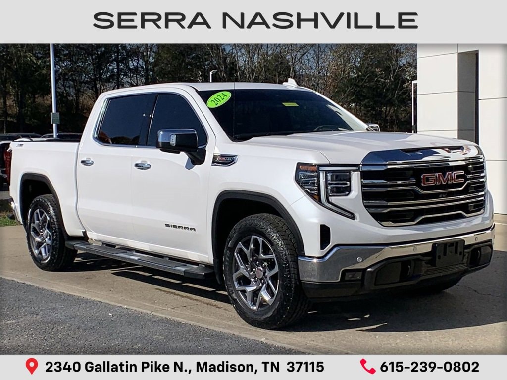 Recent Arrival! 10-Speed Automatic, 4WD, Dark Walnut/Slate Leather.White Frost Tricoat 2024 GMC Sierra 1500 SLT 4D Crew Cab 4WD EcoTec3 6.2L V8 10-Speed AutomaticVisit the #1 Volume GM dealer in Tennessee - 2340 Gallatin Pike North.Serving the greater Nashville Area. Now serving Antioch, TN - Clarksville, TN - Murfreesboro, TN - Springfield, TN.