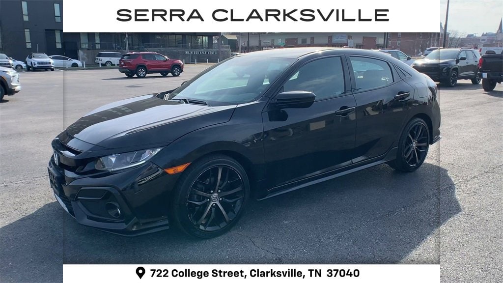 The Pre-Owned 2021 Honda Civic Sport with 1.5L I4 DOHC 16V at Serra Clarksville. Well equipped: Cloth, 18 Alloy Wheels, 4-Wheel Disc Brakes, 8 Speakers, ABS brakes, Adaptive Cruise Control: Adaptive Cruise Control (ACC) with Low-Speed Follow, Air Conditioning, Alloy wheels, AM/FM radio, Apple CarPlay/Android Auto, Auto High-beam Headlights, Automatic temperature control, Brake assist, Bumpers: body-color, Delay-off headlights, Driver door bin, Driver vanity mirror, Dual front impact airbags, Dual front side impact airbags, Electronic Stability Control, Emergency communication system: HondaLink, Exterior Parking Camera Rear, Fabric Seating Surfaces, Forward collision: Collision Mitigation Braking System (CMBS) + FCW mitigation, Four wheel independent suspension, Front anti-roll bar, Front Bucket Seats, Front Center Armrest, Front fog lights, Front reading lights, Fully automatic headlights, Illuminated entry, Lane departure: Lane Keeping Assist System (LKAS) active, Leather Shift Knob, Low tire pressure warning, Occupant sensing airbag, Outside temperature display, Overhead airbag, Panic alarm, Passenger door bin, Passenger vanity mirror, Power door mirrors, Power steering, Power windows, Radio data system, Radio: 180-Watt Audio System w/8 Speakers, Rear anti-roll bar, Rear seat center armrest, Rear window defroster, Rear window wiper, Remote keyless entry, Security system, Speed control, Speed-sensing steering, Split folding rear seat, Spoiler, Steering wheel mounted audio controls, Tachometer, Telescoping steering wheel, Tilt steering wheel, Traction control, and Trip computer.