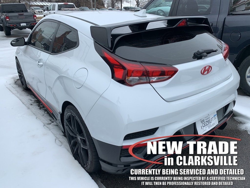 The Pre-Owned 2020 Hyundai Veloster N with 2.0L Turbocharged at Serra Clarksville. Well equipped: Performance Package (13.6 Front Rotors & 12.4 Rear Rotors, N Corner Carving Differential, Option Group 02, Variable Exhaust Valve System, and Wheels: 19 x 8.0J Alloy), 18 x 7.5J Alloy Wheels, 4-Wheel Disc Brakes, 8 Speakers, ABS brakes, Air Conditioning, Alloy wheels, AM/FM radio: SiriusXM, Apple CarPlay & Android Auto, Automatic temperature control, Brake assist, Cargo Net, Delay-off headlights, Driver door bin, Driver vanity mirror, Dual front impact airbags, Dual front side impact airbags, Electronic Stability Control, Emergency communication system: Blue Link, Exterior Parking Camera Rear, Four wheel independent suspension, Front anti-roll bar, Front Bucket Seats, Front Bucket Sport Seats, Front Center Armrest, Front reading lights, Fully automatic headlights, Heated door mirrors, Illuminated entry, Leather Shift Knob, Leather steering wheel, Low tire pressure warning, Occupant sensing airbag, Outside temperature display, Overhead airbag, Overhead console, Panic alarm, Passenger door bin, Passenger vanity mirror, Power door mirrors, Power steering, Power windows, Premium audio system: Infinity, Premium Cloth Seat Trim, Radio: AM/FM/SiriusXM 8 Display Audio, Rear anti-roll bar, Rear window defroster, Rear window wiper, Remote keyless entry, Reversible Cargo Tray, Security system, Speed control, Speed-sensing steering, Split folding rear seat, Spoiler, Steering wheel mounted audio controls, Tachometer, Telescoping steering wheel, Tilt steering wheel, Traction control, Trip computer, Turn signal indicator mirrors, Variably intermittent wipers, and Wheel Locks.