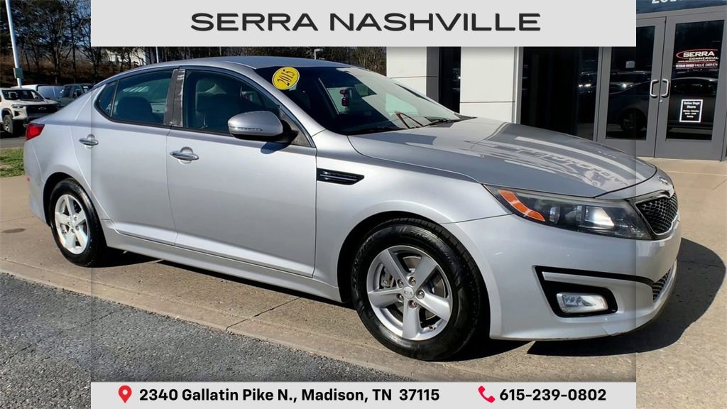 Recent Arrival! Gray Cloth.Bright Silver 2015 Kia Optima LX 4D Sedan FWD 2.4L I4 DGI DOHC 6-Speed Automatic with Sportmatic23/34 City/Highway MPGVisit the #1 Volume GM dealer in Tennessee - 2340 Gallatin Pike North.Serving the greater Nashville Area. Now serving Antioch, TN - Clarksville, TN - Murfreesboro, TN - Springfield, TN.Awards:* 2015 IIHS Top Safety Pick * 2015 KBB.com 10 Best UberX Candidates