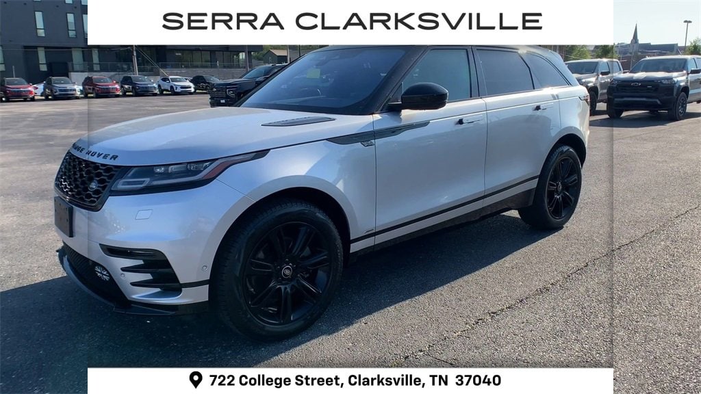 Local new car trade-in! The Pre-Owned 2021 Land Rover Range Rover Velar P250 R-Dynamic S with 2.0L I4 Turbocharged DOHC 16V LEV3-SULEV30 247hp at Serra Clarksville. Well equipped: 11 Speakers, 14-Way Front Seats w/Driver Memory, 3.23 Axle Ratio, 4-Wheel Disc Brakes, ABS brakes, Air Conditioning, Alloy wheels, AM/FM radio: SiriusXM, Apple CarPlay & Android Auto, Auto High-beam Headlights, Auto tilt-away steering wheel, Auto-dimming door mirrors, Auto-dimming Rear-View mirror, Automatic temperature control, Brake assist, Bumpers: body-color, Compass, Delay-off headlights, Driver door bin, Driver vanity mirror, Dual front impact airbags, Dual front side impact airbags, Electronic Stability Control, Emergency communication system, Exterior Parking Camera Rear, Four wheel independent suspension, Front anti-roll bar, Front Bucket Seats, Front Center Armrest, Front dual zone A/C, Front reading lights, Fully automatic headlights, Garage door transmitter, Headlight cleaning, Heated door mirrors, Illuminated entry, Low tire pressure warning, Memory seat, Navigation system: Connected Navigation PIVI Pro, Occupant sensing airbag, Outside temperature display, Overhead airbag, Overhead console, Panic alarm, Passenger door bin, Passenger vanity mirror, Perforated Grained Leather & Suedecloth Seat Trim, Power door mirrors, Power driver seat, Power Liftgate, Power moonroof, Power passenger seat, Power steering, Power windows, Radio data system, Radio: Meridian Sound System (380W), Rain sensing wipers, Rear anti-roll bar, Rear fog lights, Rear reading lights, Rear seat center armrest, Rear window defroster, Rear window wiper, Remote keyless entry, Security system, Speed control, Speed-sensing steering, Speed-Sensitive Wipers, Split folding rear seat, Spoiler, Steering wheel memory, Steering wheel mounted audio controls, Tachometer, Telescoping steering wheel, Tilt steering wheel, Traction control, Trip computer, Turn signal indicator mirrors, Variably intermittent wipers, and Wheels: 19 5 Spoke Satin Dark Grey.