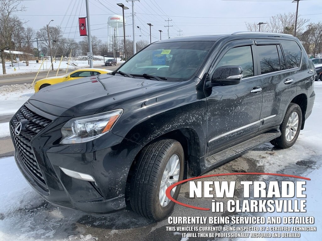 Onyx Black 2017 Lexus GX 460The Pre-Owned 2017 Lexus GX 460 with 4.6L V8 DOHC Dual VVT-i 32V at Serra Clarksville. Well equipped: Navigation Package (Lexus Enform Destinations), Preferred Accessory Package (Alloy Wheel Locks, Cargo Net, Carpet Cargo Mat, and Key Gloves), Premium Package (Dual Front & Rear Auto Air Conditioner, Front & Rear Heated Seats, Intuitive Parking Assist, LED Front Fog & Driving Lamp, Perforated Leather Seat Trim, Rain Sensing Intermittent Wipers, Ventilated Front Seats, Wheels: 18 x 7.5 Split 6-Spoke Aluminum Alloy, and Windshield De-Icer), 18 x 7.5 6-Spoke Aluminum Alloy Wheels, 3.909 Axle Ratio, 3rd row seats: split-bench, 4-Wheel Disc Brakes, 9 Speakers, ABS brakes, Air Conditioning, All-Weather Floor Mats w/Cargo Tray, Alloy wheels, AM/FM radio: SiriusXM, Anti-whiplash front head restraints, Auto tilt-away steering wheel, Auto-Dimming & Power-Folding Exterior Mirrors, Auto-dimming Rear-View mirror, Automatic temperature control, Blind Spot Monitor w/Rear Cross Traffic Alert, Bodyside moldings, Brake assist, Bumpers: body-color, CD player, Compass, Delay-off headlights, Driver door bin, Driver vanity mirror, Driver's Seat Mounted Armrest, Dual front impact airbags, Dual front side impact airbags, Electronic Stability Control, Emergency communication system: Safety Connect, Exterior Parking Camera Rear, Front anti-roll bar, Front Bucket Seats, Front dual zone A/C, Front reading lights, Front wheel independent suspension, Fully automatic headlights, Garage door transmitter: HomeLink, Headlamp Washers, Heated door mirrors, Illuminated entry, Illuminated running boards, Knee airbag, Leather Shift Knob, Leather steering wheel, Low tire pressure warning, Mahogany Wood & Leather Trimmed Steering Wheel, Memory seat, NuLuxe Seat Trim, Occupant sensing airbag, Outside temperature display, Overhead airbag, Overhead console, Panic alarm, Passenger door bin, Passenger seat mounted armrest, Passenger vanity mirror, Power door mirrors, Power driver seat, Power moonroof, Power passenger seat, Power steering, Power windows, Radio data system, Radio: AM/FM Lexus Premium Audio, Rear anti-roll bar, Rear reading lights, Rear seat center armrest, Rear side impact airbag, Rear window defroster, Rear window wiper, Remote keyless entry, Roof rack: rails only, Security system, Speed control, Speed-sensing steering, Split folding rear seat, Spoiler, Steering wheel memory, Steering wheel mounted audio controls, Tachometer, Telescoping steering wheel, Tilt steering wheel, Traction control, Trip computer, Turn signal indicator mirrors, and Variably intermittent wipers.4WD 4.6L V8 DOHC Dual VVT-i 32V 6-Speed Automatic with Sequential Shift ECTRecent Arrival! Odometer is 11977 miles below market average!Awards:* 2017 KBB.com Brand Image Awards