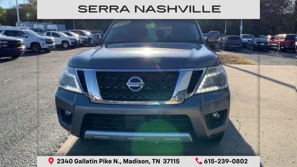 Recent Arrival! Clean CARFAX.Gun Metallic 2018 Nissan Armada SV 4D Sport Utility RWD 5.6L V8 DOHC 32V Endurance 7-Speed AutomaticVisit the #1 Volume GM dealer in Tennessee - 2340 Gallatin Pike North.Serving the greater Nashville Area. Now serving Antioch, TN - Clarksville, TN - Murfreesboro, TN - Springfield, TN.