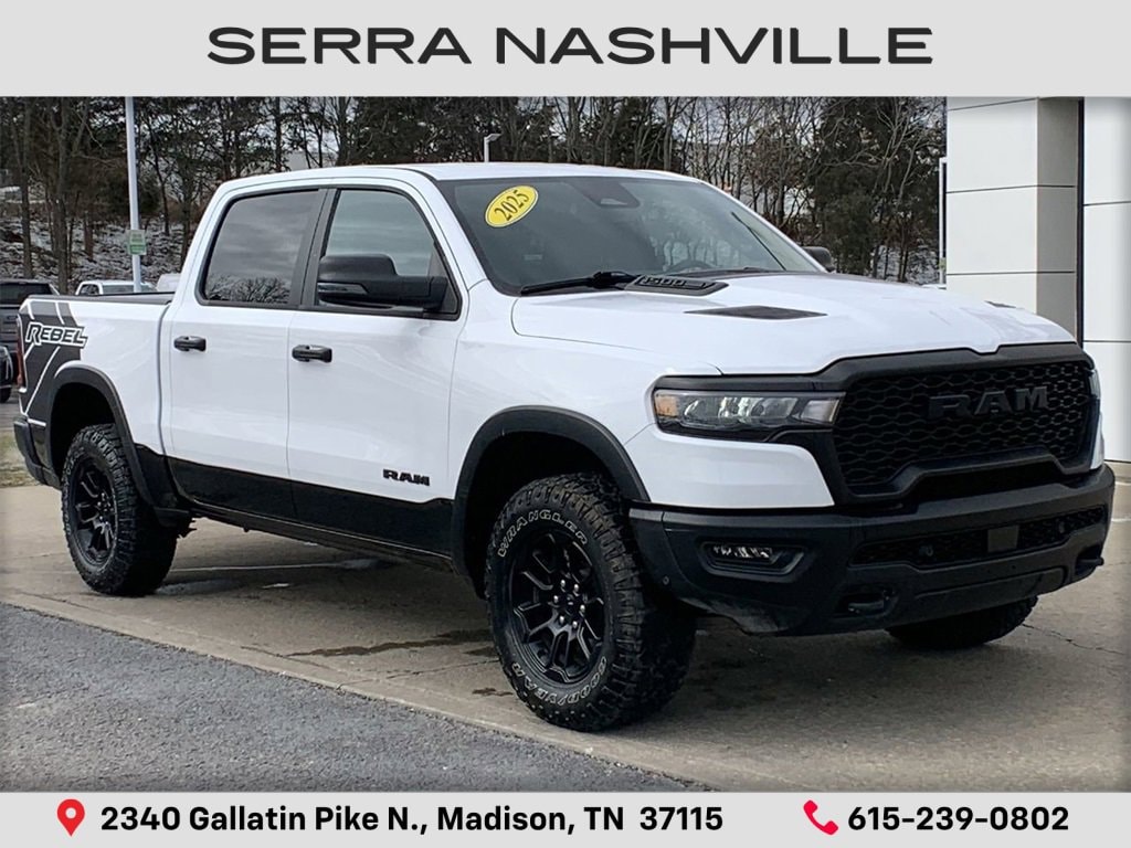 Recent Arrival! Clean CARFAX.Bright White Clearcoat 2025 Ram 1500 Rebel 4D Crew Cab 4WD 3.0L I6 8-Speed AutomaticVisit the #1 Volume GM dealer in Tennessee - 2340 Gallatin Pike North.Serving the greater Nashville Area. Now serving Antioch, TN - Clarksville, TN - Murfreesboro, TN - Springfield, TN.Awards:* Motor Trend Automobiles of the year