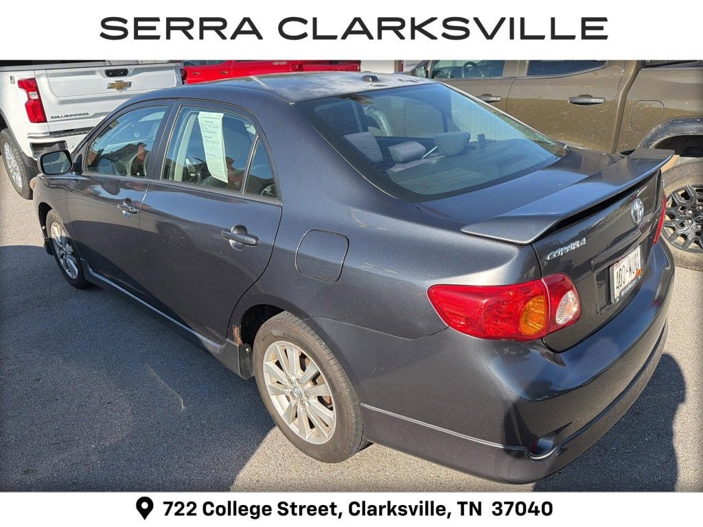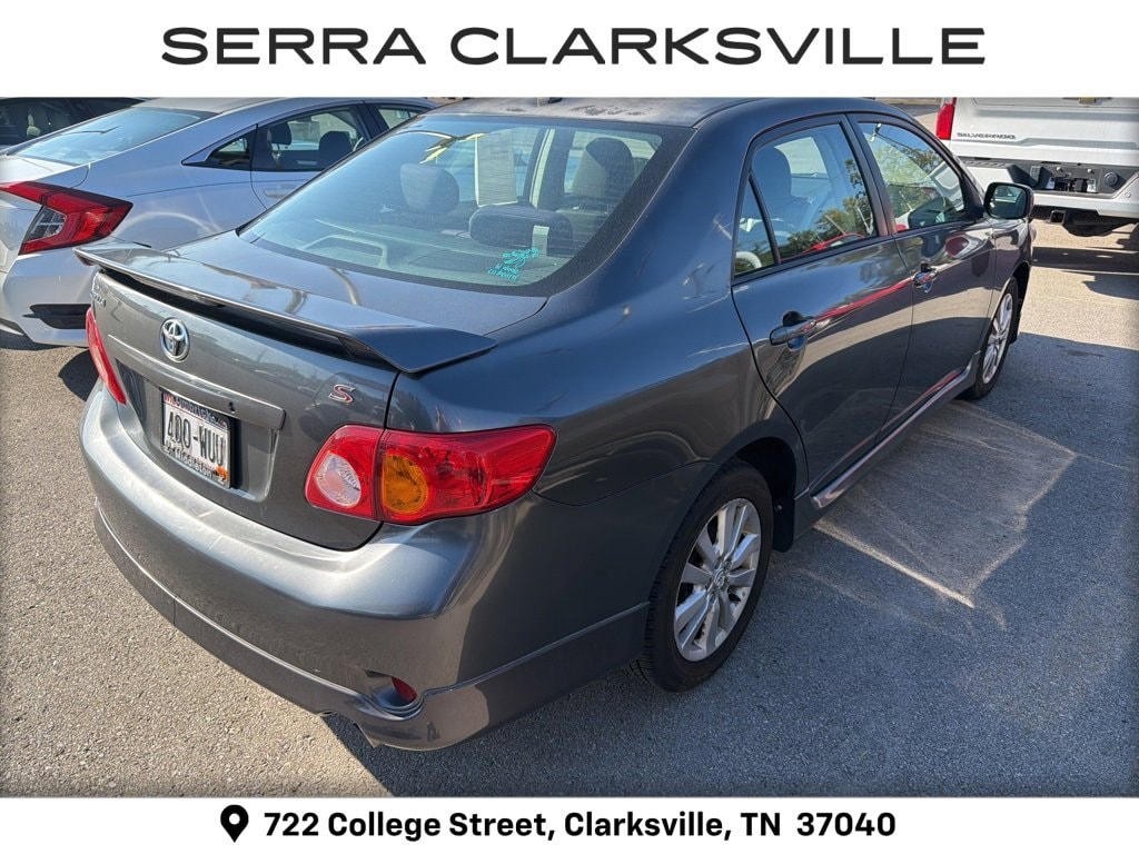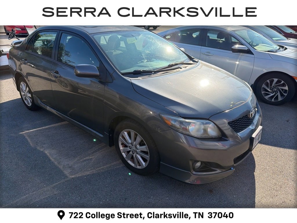 The Pre-Owned 2009 Toyota Corolla S with 1.8L I4 DOHC Dual VVT-i at Serra Clarksville. Well equipped: All Weather Guard Package (Heated Power Remote-Controlled Outside Mirrors, Heavy-Duty Heater, and Rear Seat Heater Ducts), Power Package (Power Door Locks, Power Windows, and Remote Keyless Entry w/Panic Switch), Sport Package (16 Alloy Wheels, Color-Keyed Rear Deck Spoiler, and Electric Cruise Control), 16 Steel Disc Wheels, 6 Speakers, ABS brakes, Air Conditioning, AM/FM radio, AM/FM Stereo w/CD/MP3 & 6 Speakers, Anti-whiplash front head restraints, Brake assist, Bumpers: body-color, CD player, Driver door bin, Driver vanity mirror, Dual front impact airbags, Dual front side impact airbags, Front anti-roll bar, Front Bucket Seats, Front Center Armrest, Front fog lights, Front reading lights, Front Sport Bucket Seats, Front wheel independent suspension, Illuminated entry, Leather steering wheel, Low tire pressure warning, Occupant sensing airbag, Outside temperature display, Overhead airbag, Passenger door bin, Passenger vanity mirror, Power door mirrors, Power steering, Power Tilt & Slide Moonroof, Rear anti-roll bar, Rear window defroster, Speed-sensing steering, Split folding rear seat, Steering wheel mounted audio controls, Tachometer, Telescoping steering wheel, Tilt steering wheel, Trip computer, Unique Sport Cloth Seat Trim, and Vehicle Stability Control.