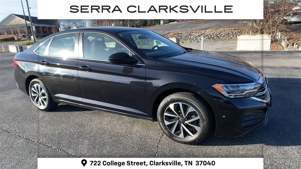 The Pre-Owned 2024 Volkswagen Jetta 1.5T S with 1.5L I-4 DI DOHC Turbocharged at Serra Clarksville. Well equipped: Light Gray Cloth, 4 Speakers, 4-Wheel Disc Brakes, ABS brakes, Active Blind Spot Monitor, Air Conditioning, Alloy wheels, Auto-dimming Rear-View mirror, Brake assist, Bumpers: body-color, Cloth Seat Trim, Delay-off headlights, Driver door bin, Driver vanity mirror, Dual front impact airbags, Dual front side impact airbags, Electronic Stability Control, Emergency communication system: VW Car-Net Safe & Secure 5-year, Exterior Parking Camera Rear, Front anti-roll bar, Front Bucket Seats, Front Center Armrest, Front Seats, Front wheel independent suspension, Fully automatic headlights, Heated door mirrors, Illuminated entry, Leather Shift Knob, Leather steering wheel, Low tire pressure warning, Occupant sensing airbag, Outside temperature display, Overhead airbag, Overhead console, Panic alarm, Passenger door bin, Passenger vanity mirror, Power door mirrors, Power steering, Power windows, Radio data system, Radio: MIB3 Composition Color w/6.5 Touchscreen, Rain sensing wipers, Rear anti-roll bar, Rear reading lights, Rear window defroster, Remote keyless entry, Speed control, Speed-sensing steering, Split folding rear seat, Steering wheel mounted audio controls, Tachometer, Telescoping steering wheel, Tilt steering wheel, Traction control, Trip computer, Variably intermittent wipers, and Wheels: 16 2-Tone Machined Alloy.