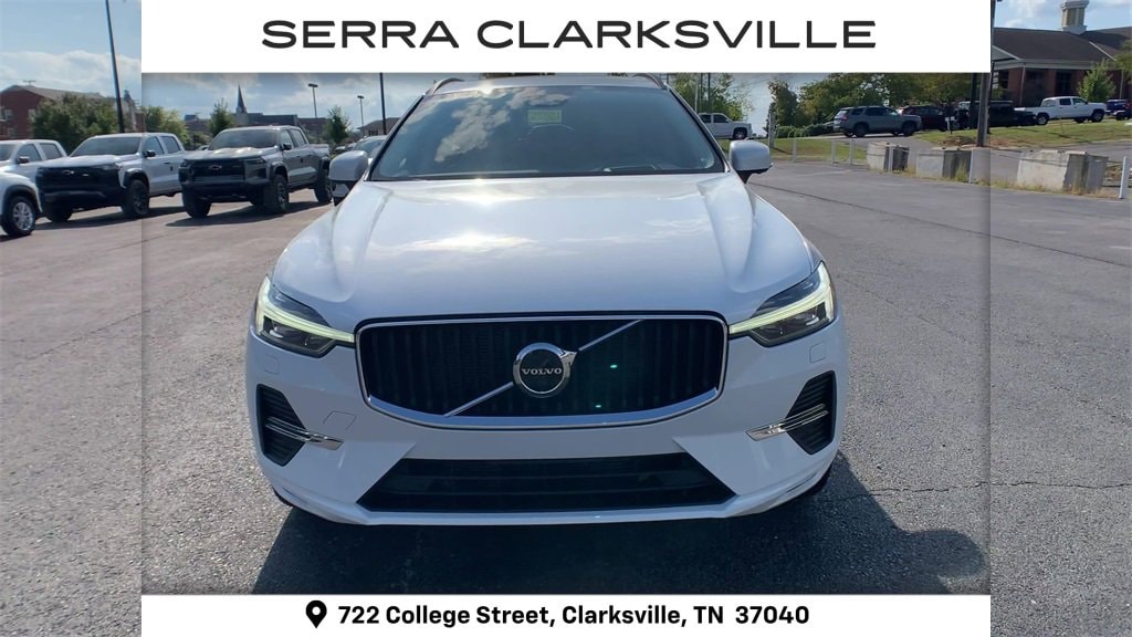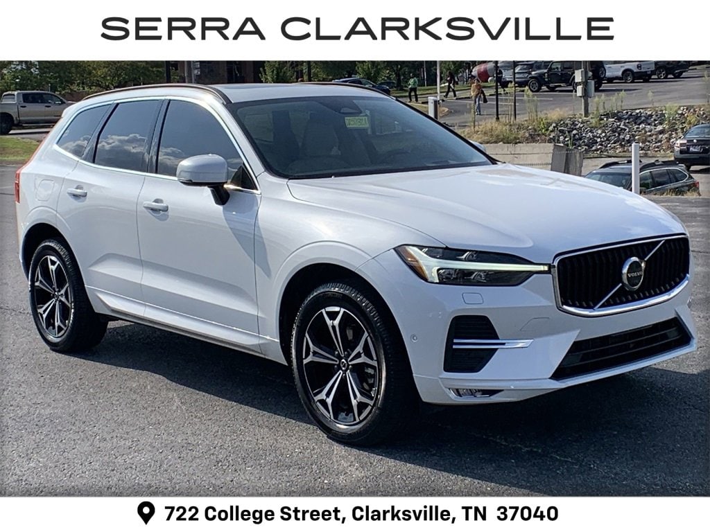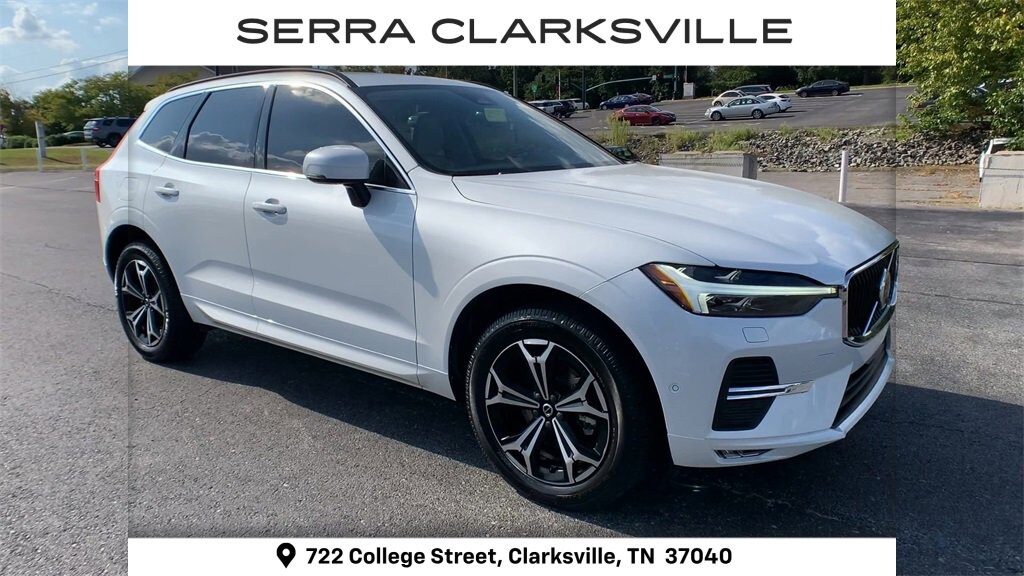 One-owner local new car trade-in! Clean CARFAX. The Pre-Owned 2022 Volvo XC60 B5 Momentum with 2.0L I4 Turbocharged at Serra Clarksville. Well equipped: Advanced Package (12V Outlet in Cargo Area, 360 Degree Surroundview Camera, Air Purifier, Graphical Head-Up Display, HomeLink Garage Door Transmitter, Interior High Level Illumination, Pilot Assist Driver Assistance System, Power Child Locks - Rear Doors, and Power Folding Rear Head Restraints), Climate Package (Headlight High Pressure Cleaning, Heated Rear Seats, and Heated Steering Wheel), AWD, 10 Speakers, 4-Wheel Disc Brakes, ABS brakes, Air Conditioning, Alloy wheels, Anti-whiplash front head restraints, Auto High-beam Headlights, Auto-dimming door mirrors, Auto-dimming Rear-View mirror, Automatic temperature control, Blonde City Weave Textile Upholstery, Brake assist, Bumpers: body-color, Delay-off headlights, Driver door bin, Driver vanity mirror, Dual front impact airbags, Dual front side impact airbags, Electronic Stability Control, Emergency communication system: Volvo Cars App w/4 Year Subscription, Exterior Parking Camera Rear, Four wheel independent suspension, Front anti-roll bar, Front Bucket Seats, Front Center Armrest, Front dual zone A/C, Front fog lights, Front reading lights, Fully automatic headlights, harman/kardon Premium Sound, Heated door mirrors, Heated Front Bucket Seats, Heated front seats, Illuminated entry, Knee airbag, Leather Shift Knob, Low tire pressure warning, Memory seat, Occupant sensing airbag, Outside temperature display, Overhead airbag, Panic alarm, Passenger door bin, Passenger vanity mirror, Power door mirrors, Power driver seat, Power moonroof, Power Operated Tailgate, Power passenger seat, Power steering, Power windows, Radio data system, Radio: High Performance Audio System, Rain sensing wipers, Rear anti-roll bar, Rear fog lights, Rear reading lights, Rear seat center armrest, Rear window defroster, Rear window wiper, Remote keyless entry, Security system, Speed control, Split folding rear seat, Spoiler, Steering wheel mounted audio controls, Tachometer, Telescoping steering wheel, Tilt steering wheel, Traction control, Trip computer, Turn signal indicator mirrors, Variably intermittent wipers, Wheels: 18 5-Spoke Silver Alloy, and Wheels: 19 5-Y Spoke Black Diamond Cut Alloy.